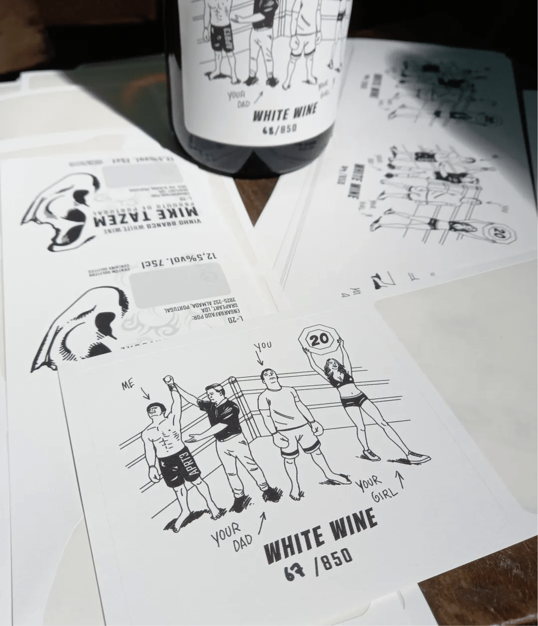 The thing is we can get creative with the winemaking, but when it comes to the bottle labels, we let our natural wines inspire others to create.